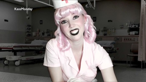Medical center, female dom, latex handjob
