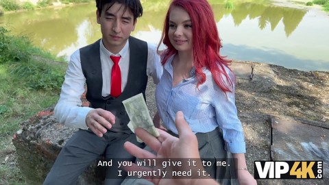 VIP4K. Redhead teen Miss Olivia flaunts her lingerie and gets pounded in public in front of her boyfriend