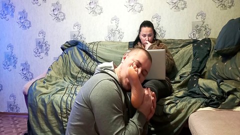 Milf stepmom gets cozy on the sofa with a young guy and enjoys multiple orgasms