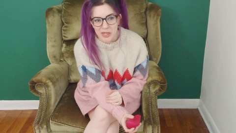 Girl masturbating, purple hair, sex toy review