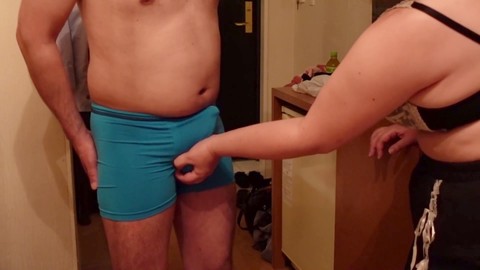 First-timer, ball crush, femdom handjob