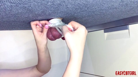 Cock and ball torture, domme, glue