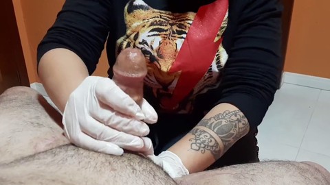 Huge cumshot, nurse handjob, teasing handjob