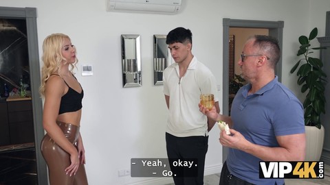 VIP4K - Tight Russian professor's wife bounces on a huge cock while her husband watches