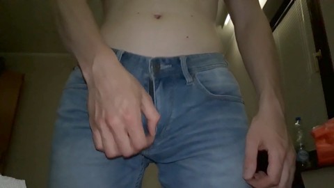 Hands-free cumshot while jerking off big juicy cock in jeans